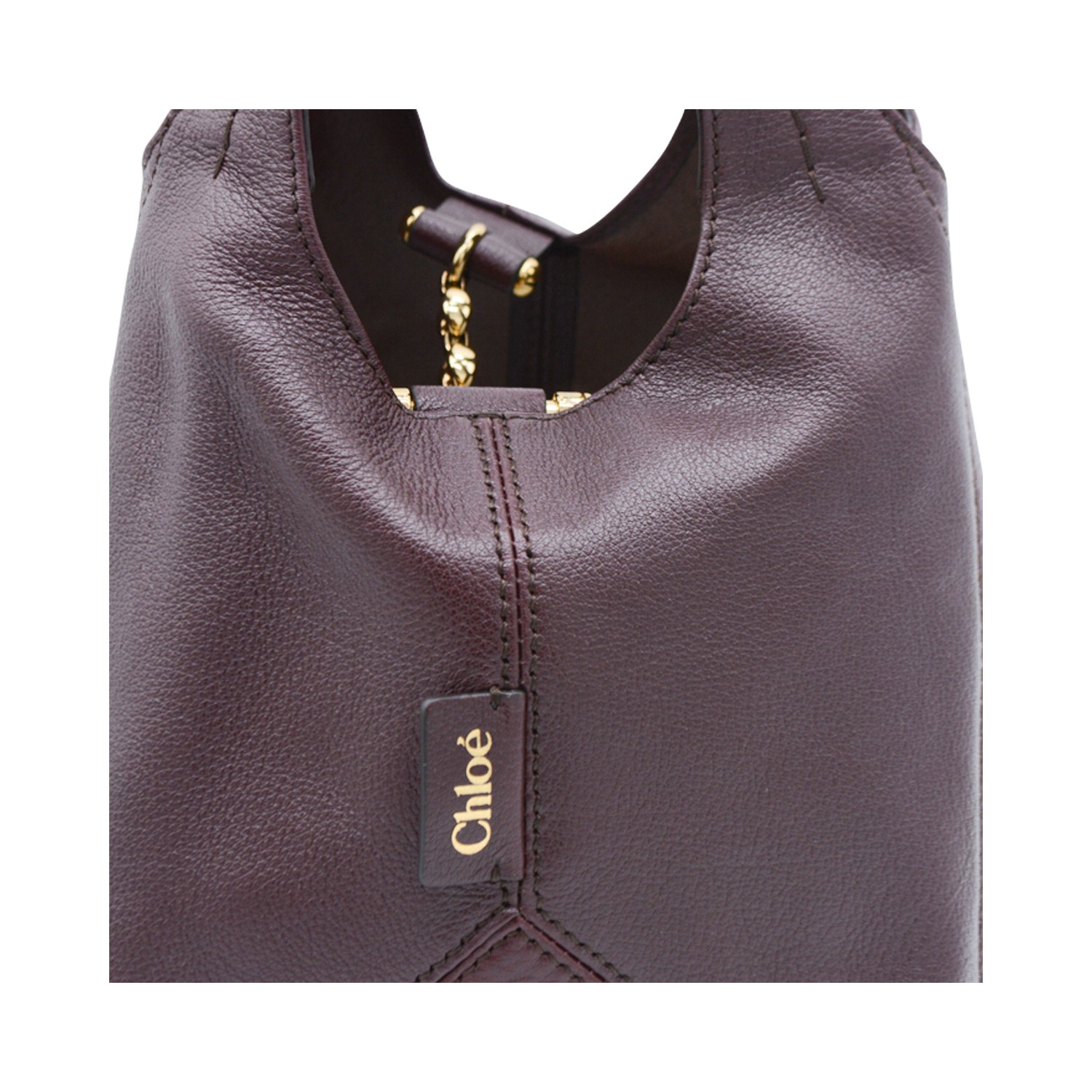 Dark purple leather Balloon small tote from Chlofeaturing handles, frontal logo, toggle closure and main compartment.