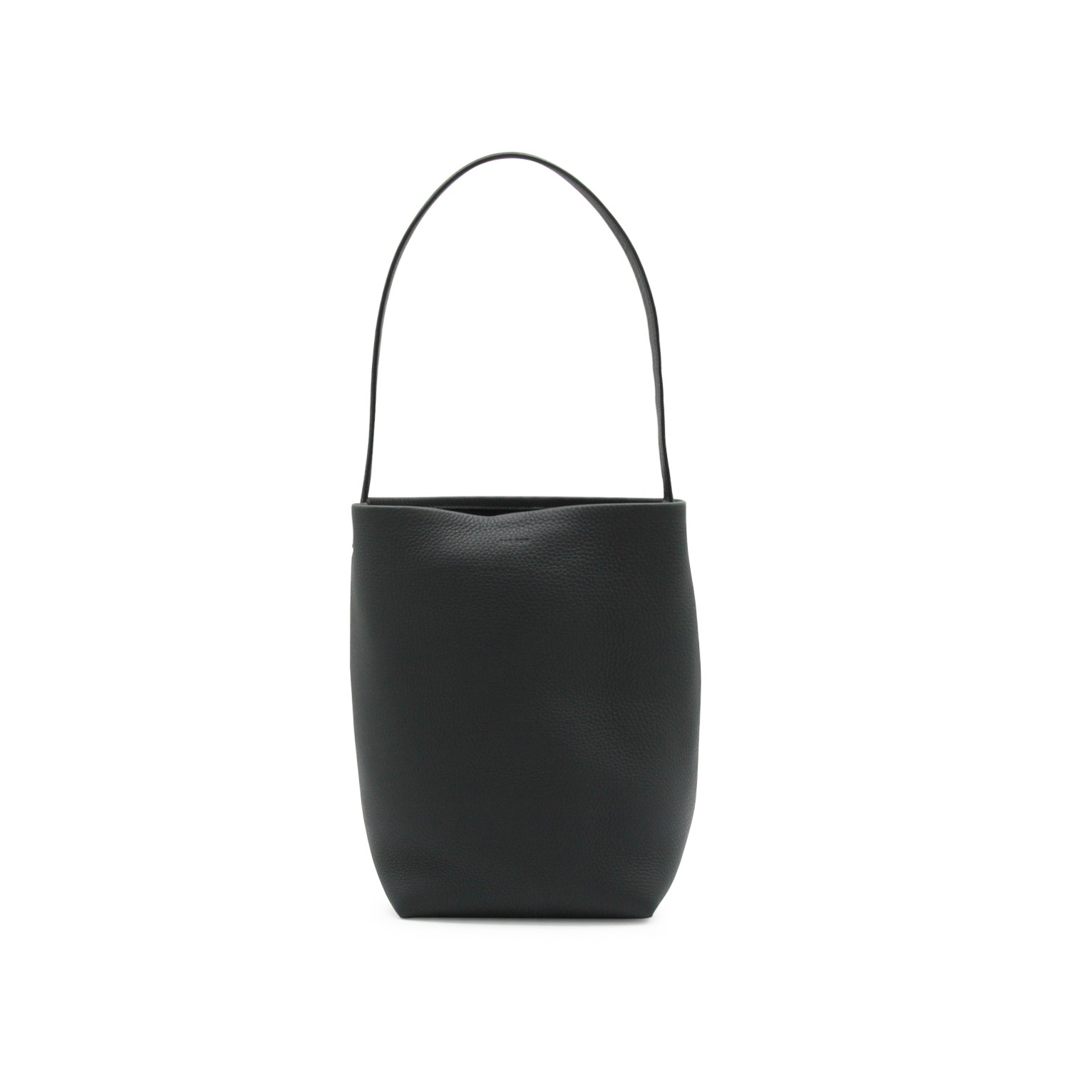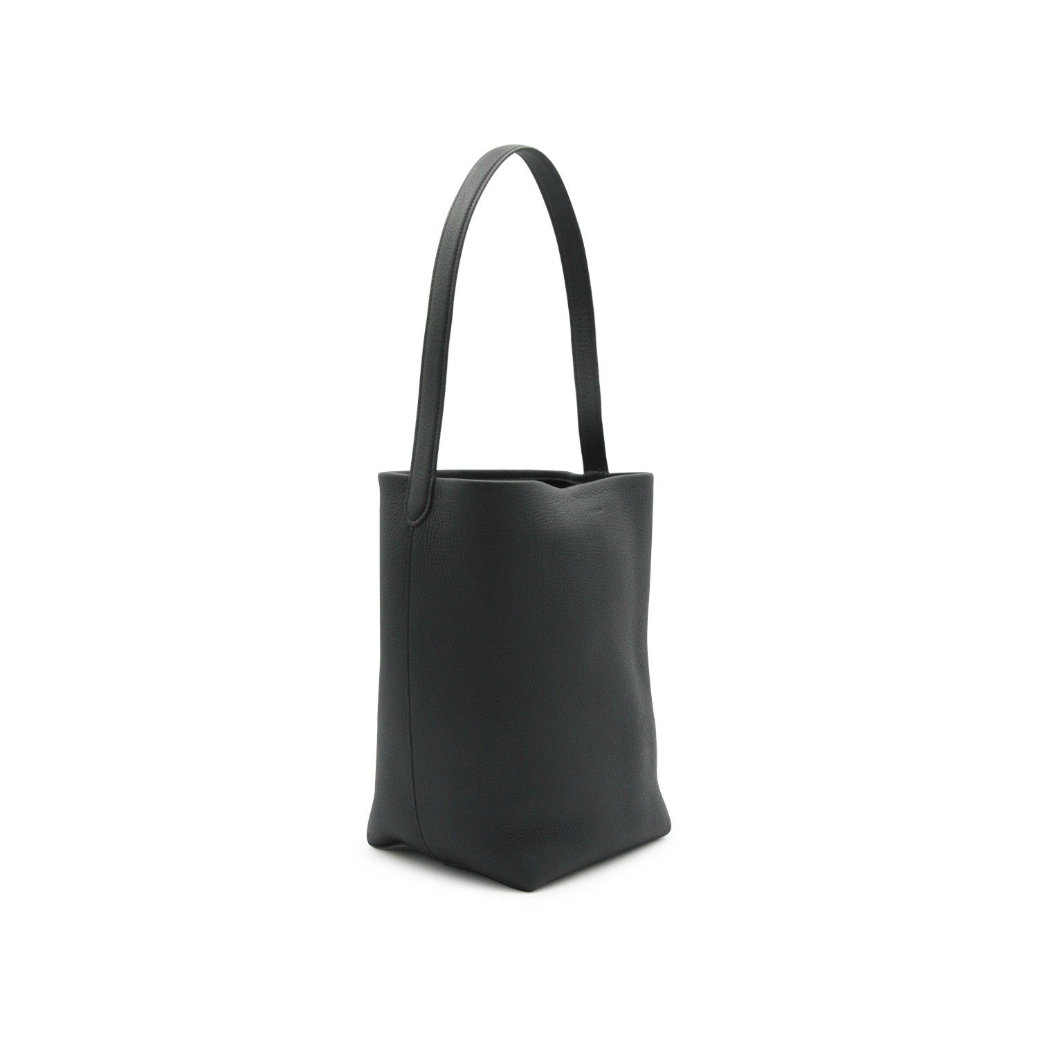 Dark green leather medium N/S Park Tote from The Row featuring top single handle, hook fastening, logo detailing and main compartment.