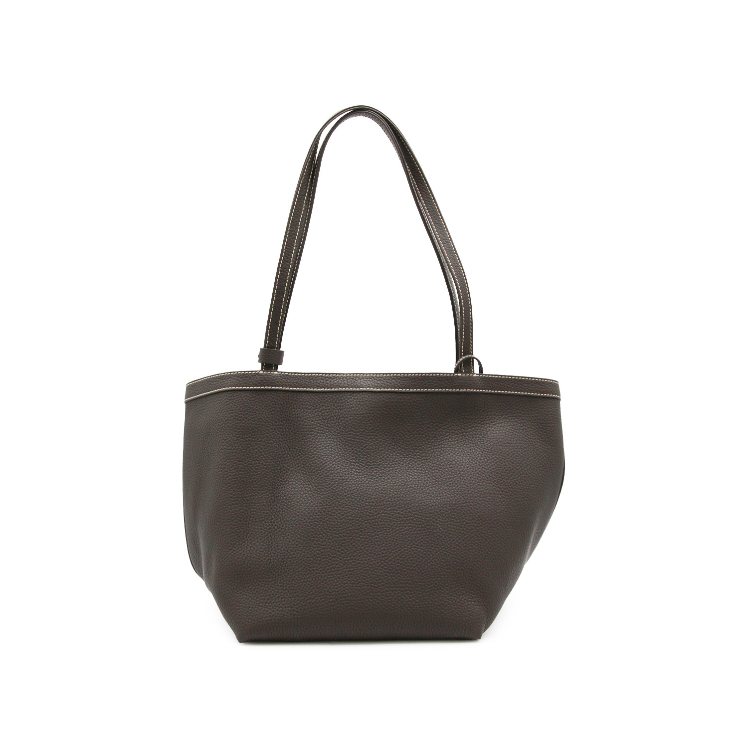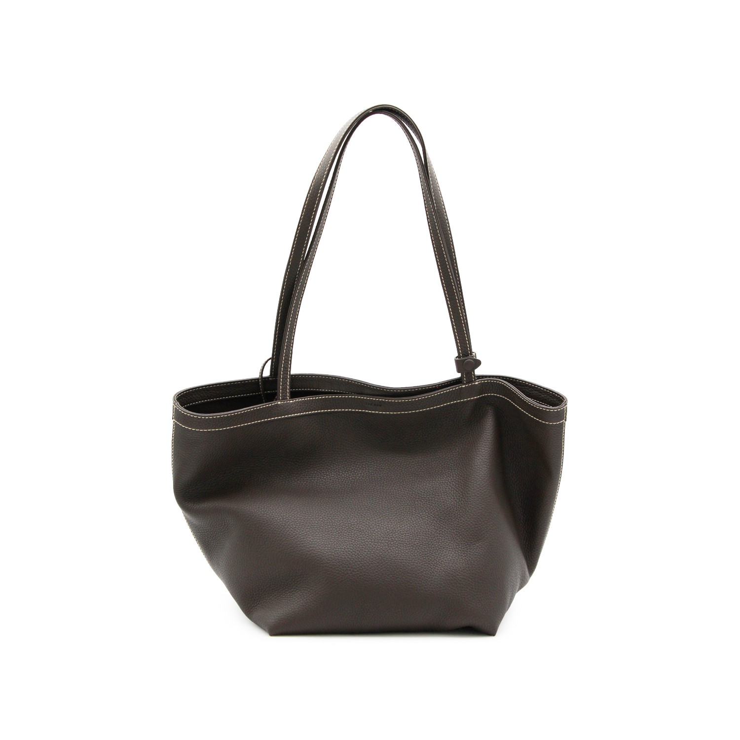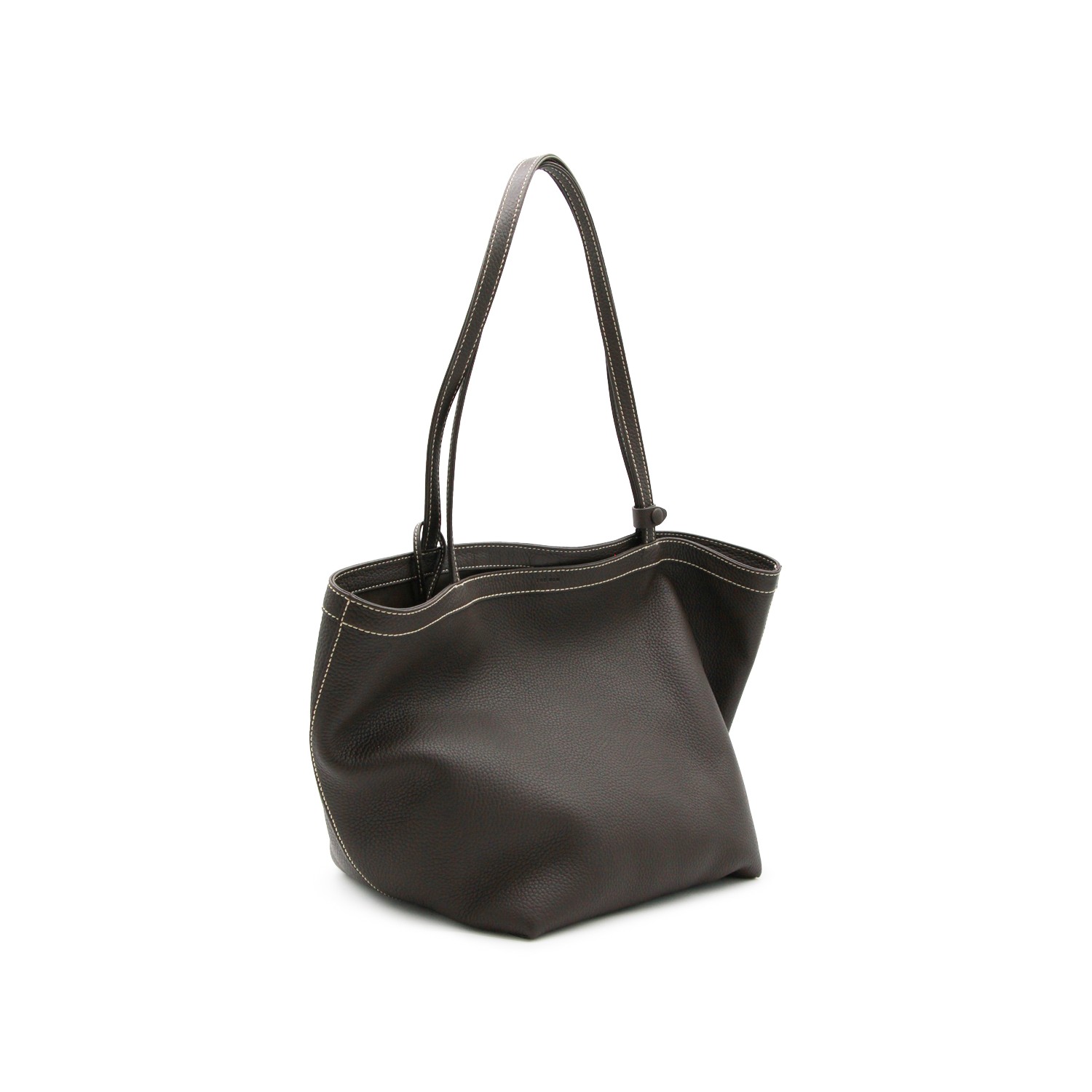 DARK BROWN LEATHER PARK TOTE THREE STITCH