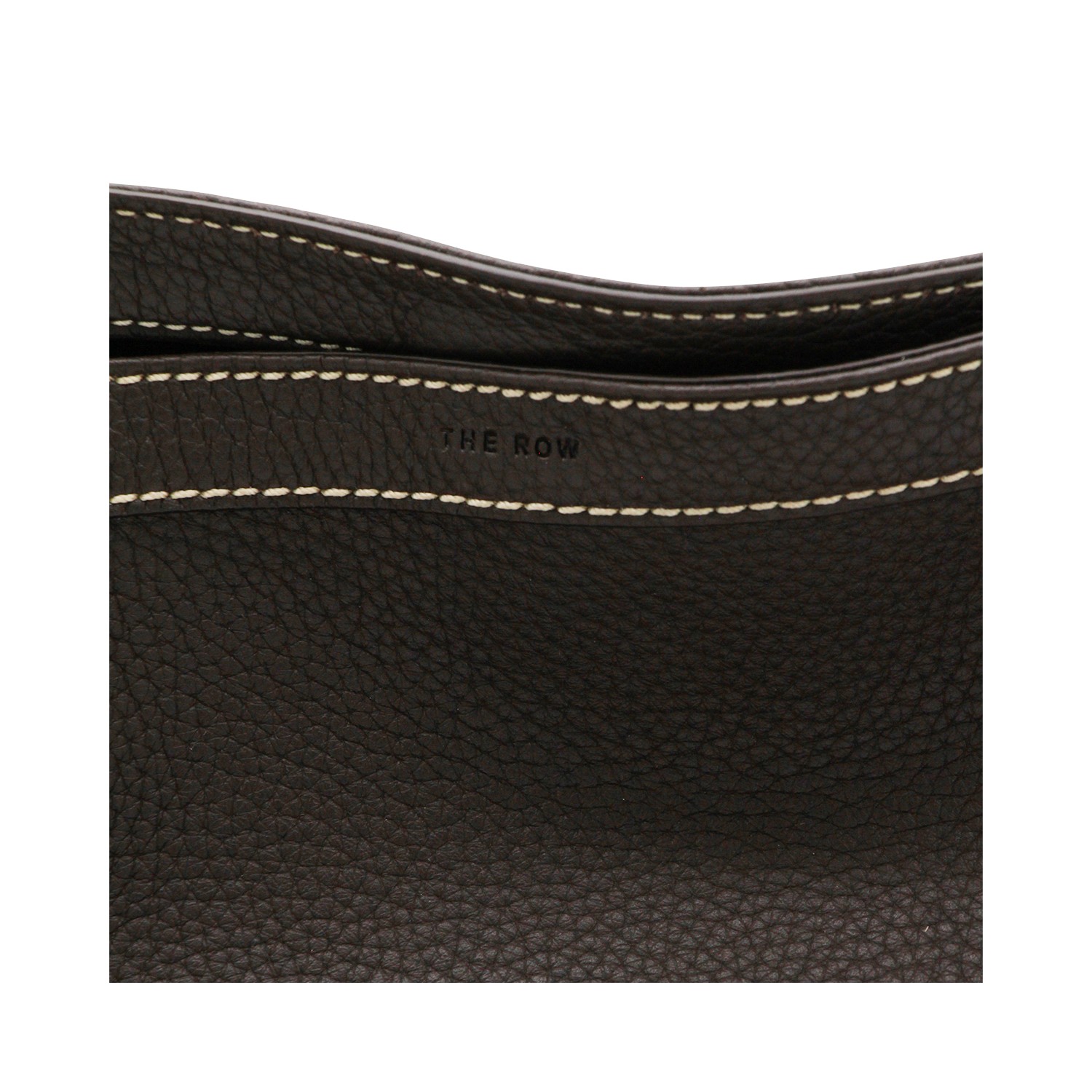 Dark brown leather Park Tote Three Stitch from The Row featuring top handles, contrasting stitchings, engraved logo and main compartment.