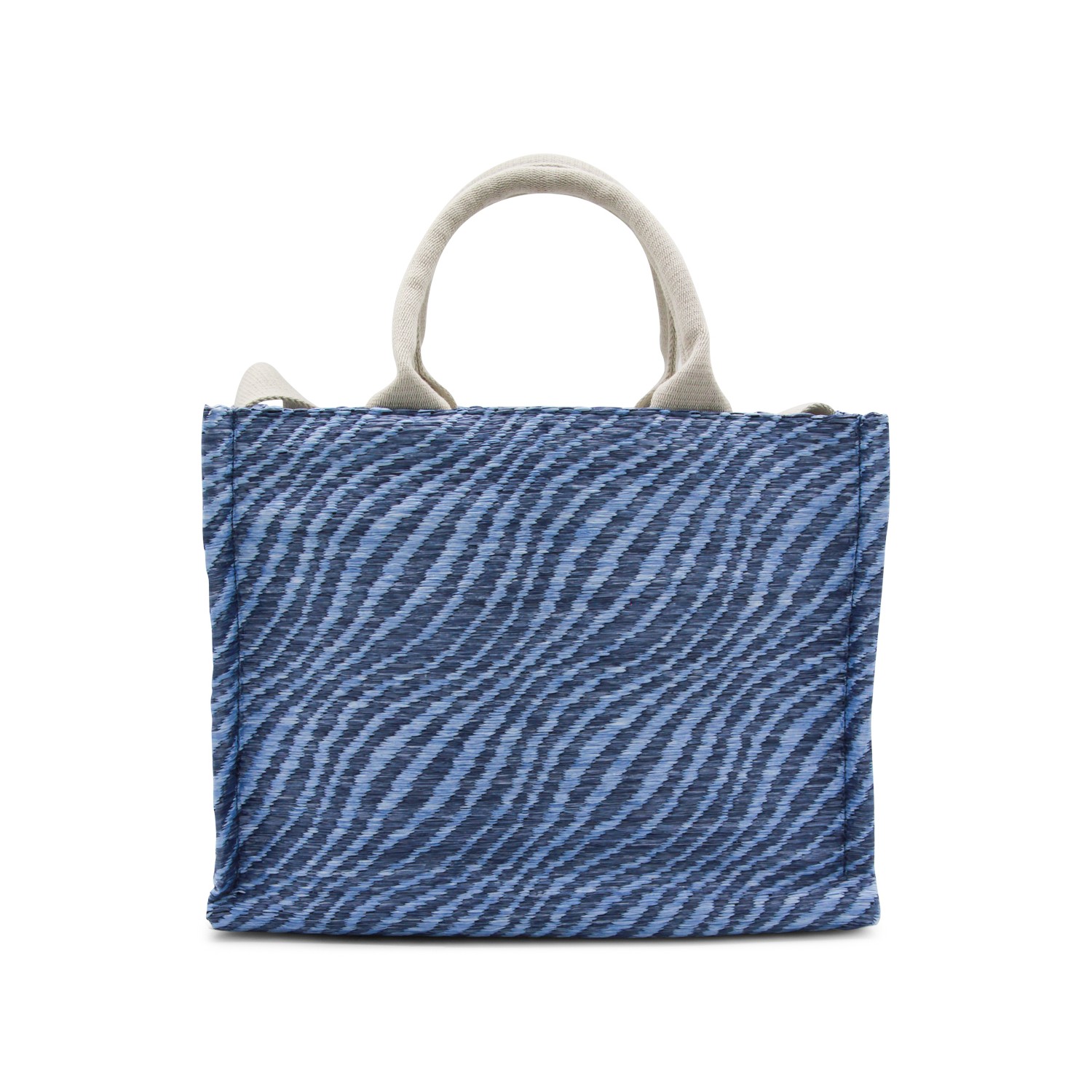 Blue tote from Marni featuring top handles, strap, frontal logo, all over pattern and main compartment.