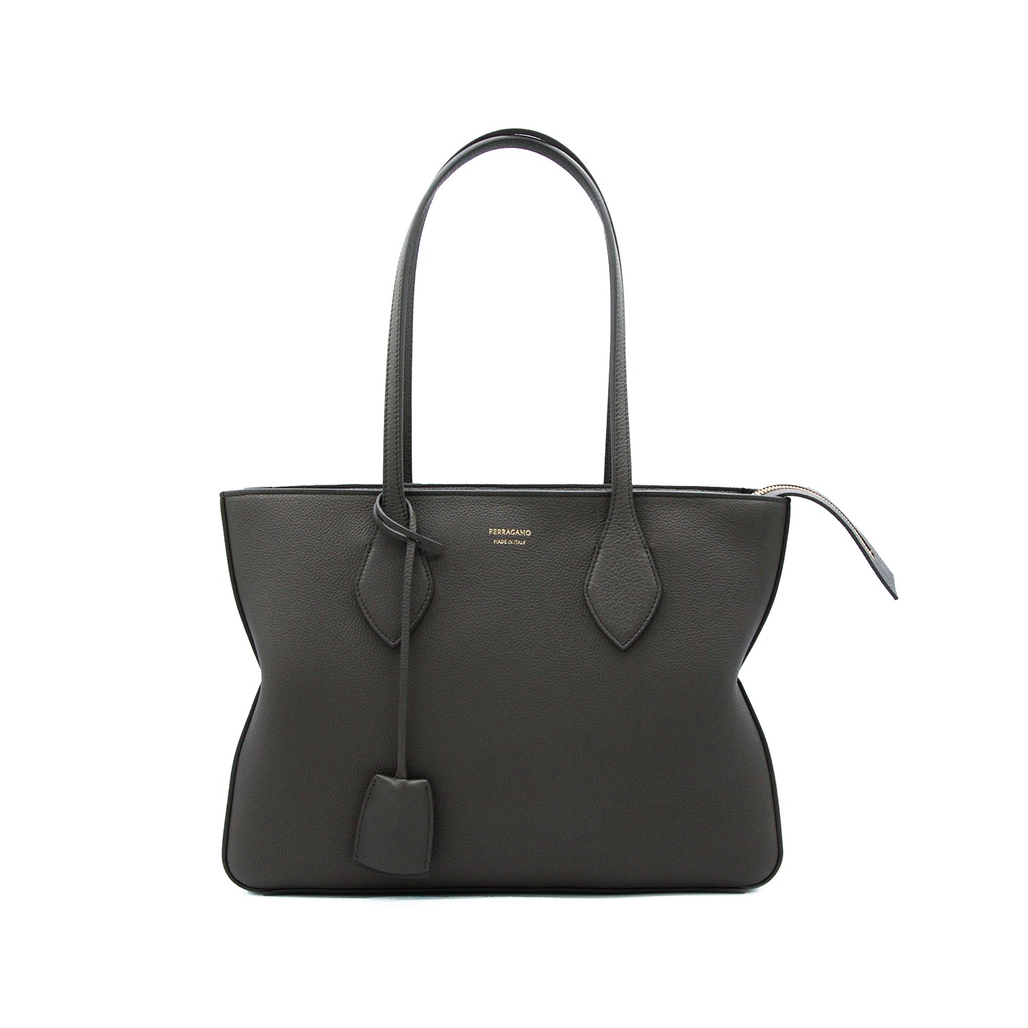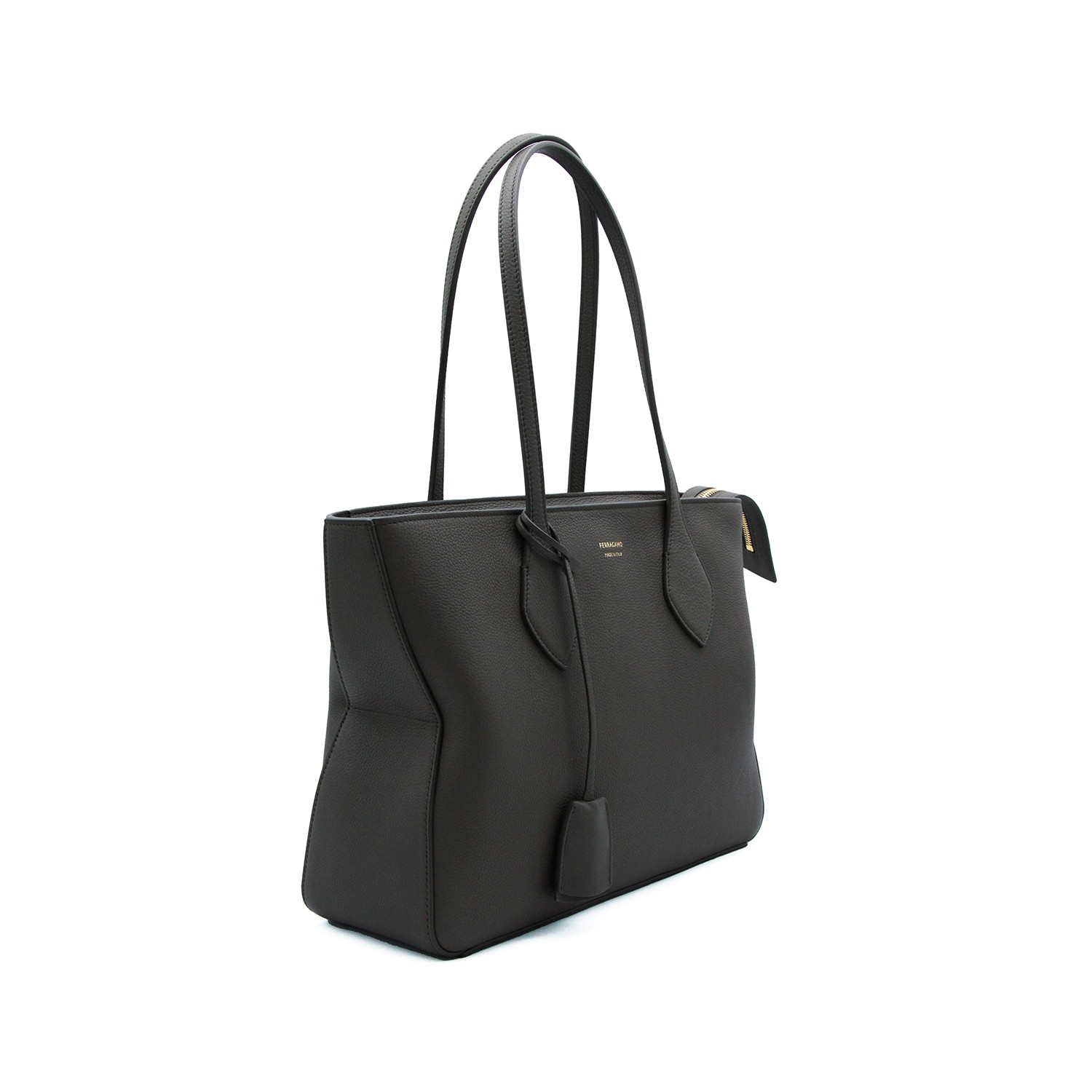 Black leather Star tote from Ferragamo featuring two handles, zip fastening, golden logo and main compartment.