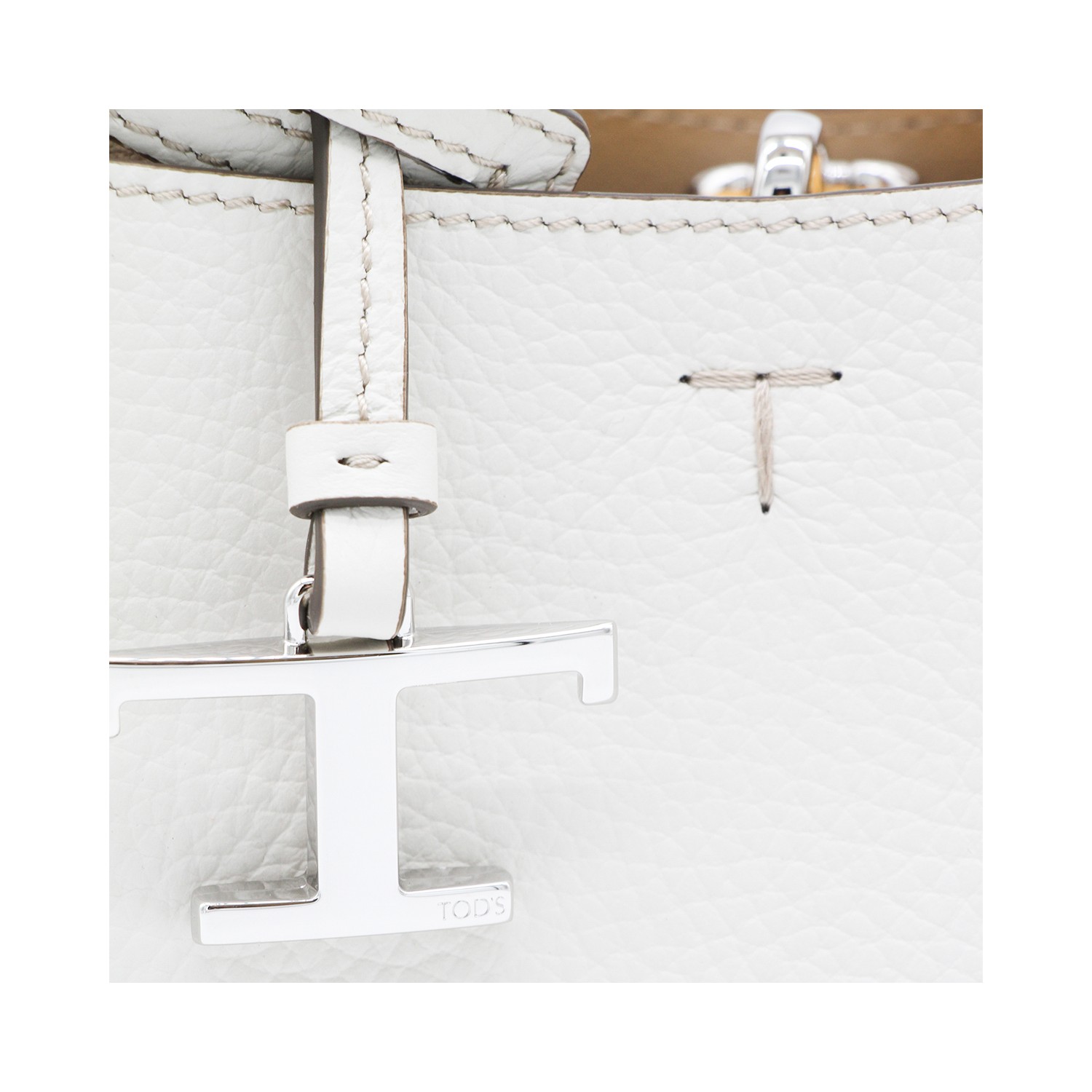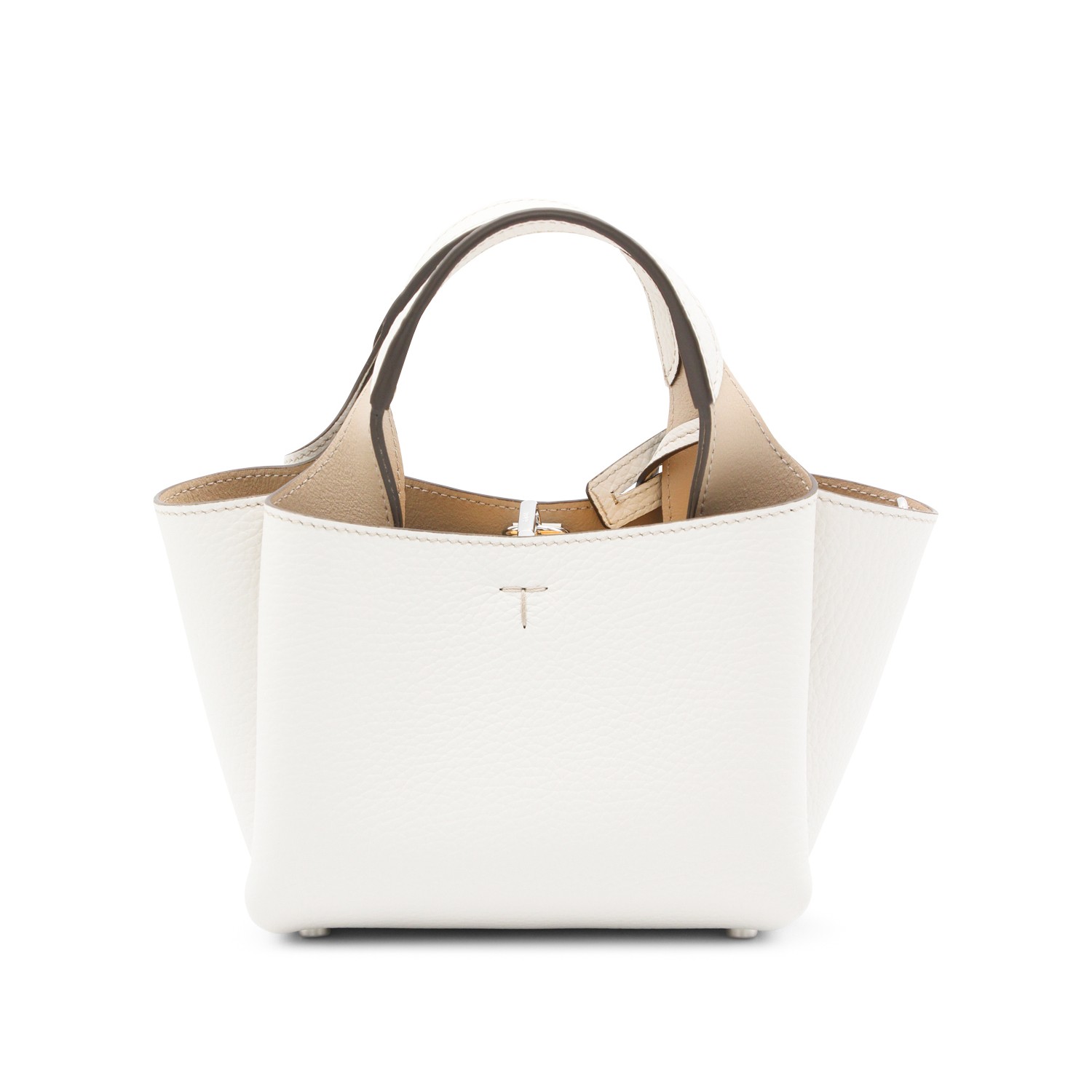 White leather top handle bag from Tod's featuring top handles, silver tone hardware, fronta logo, shoulder strap and inside pocket.