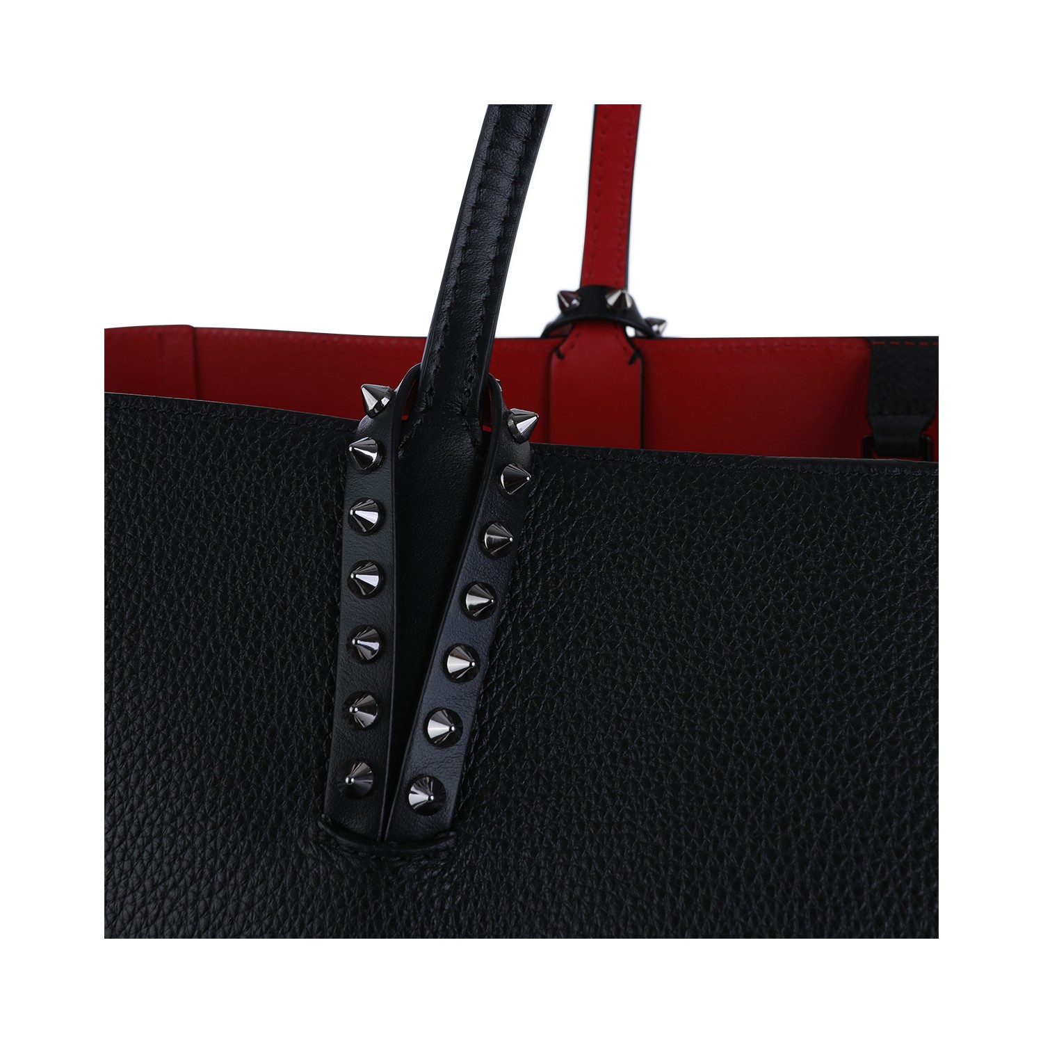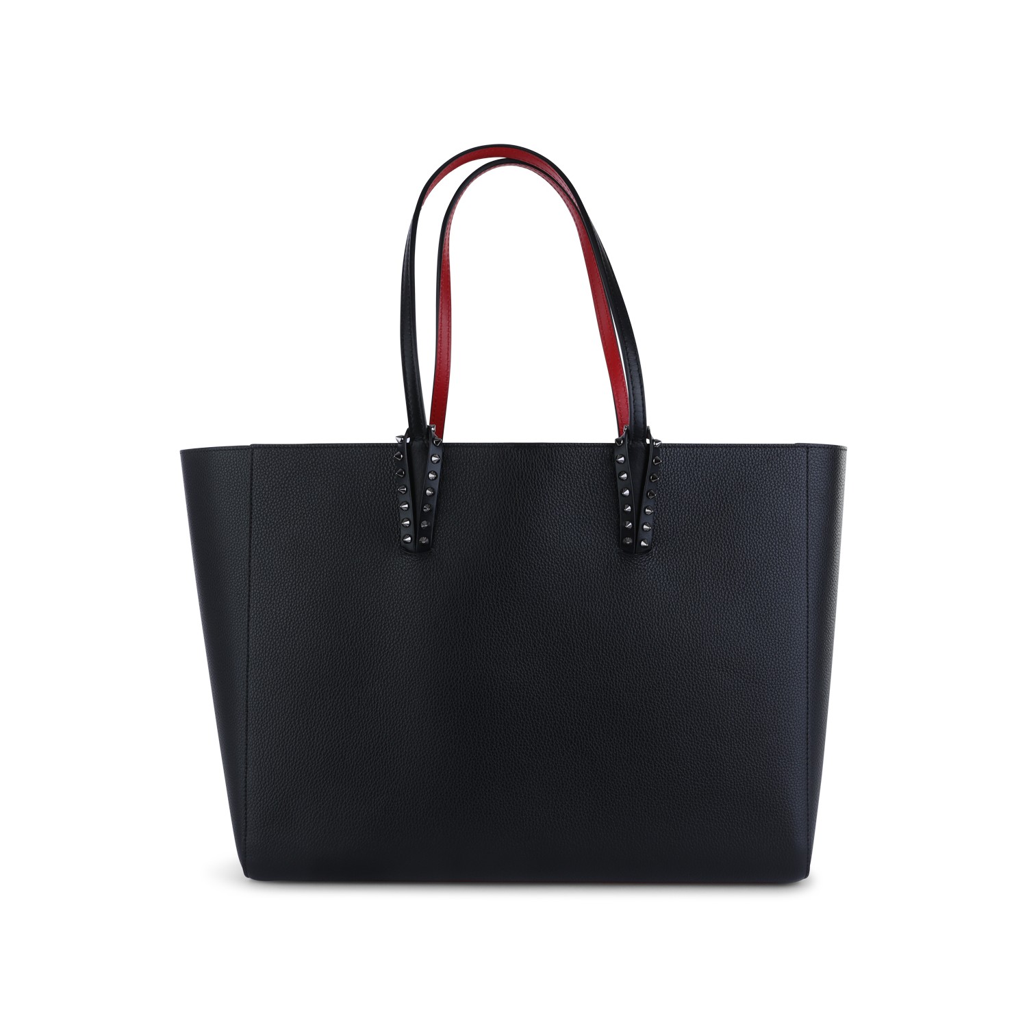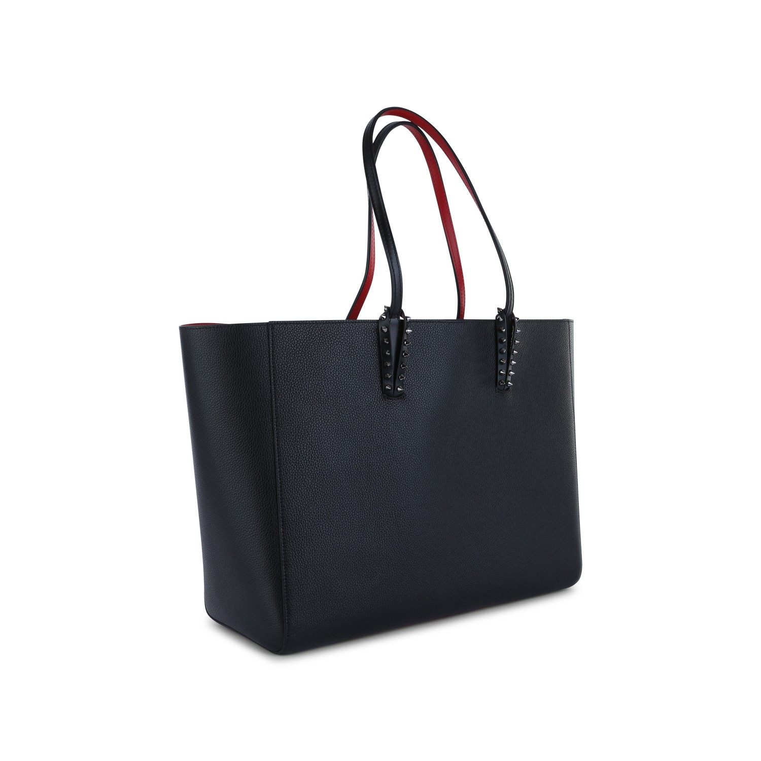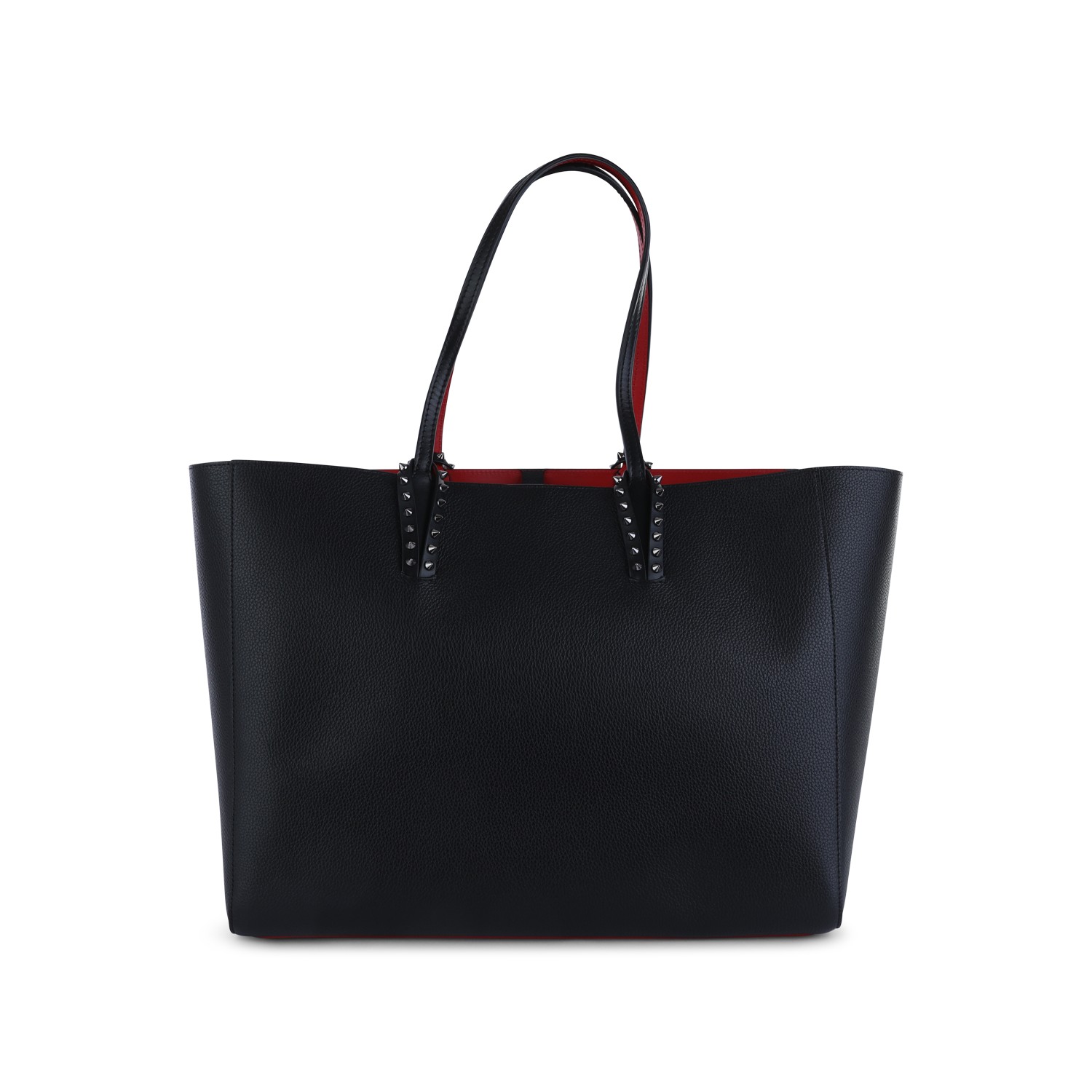 Black leather tote from Christian Louboutin featuring top handles, main compartment, iconic inside and studs details.