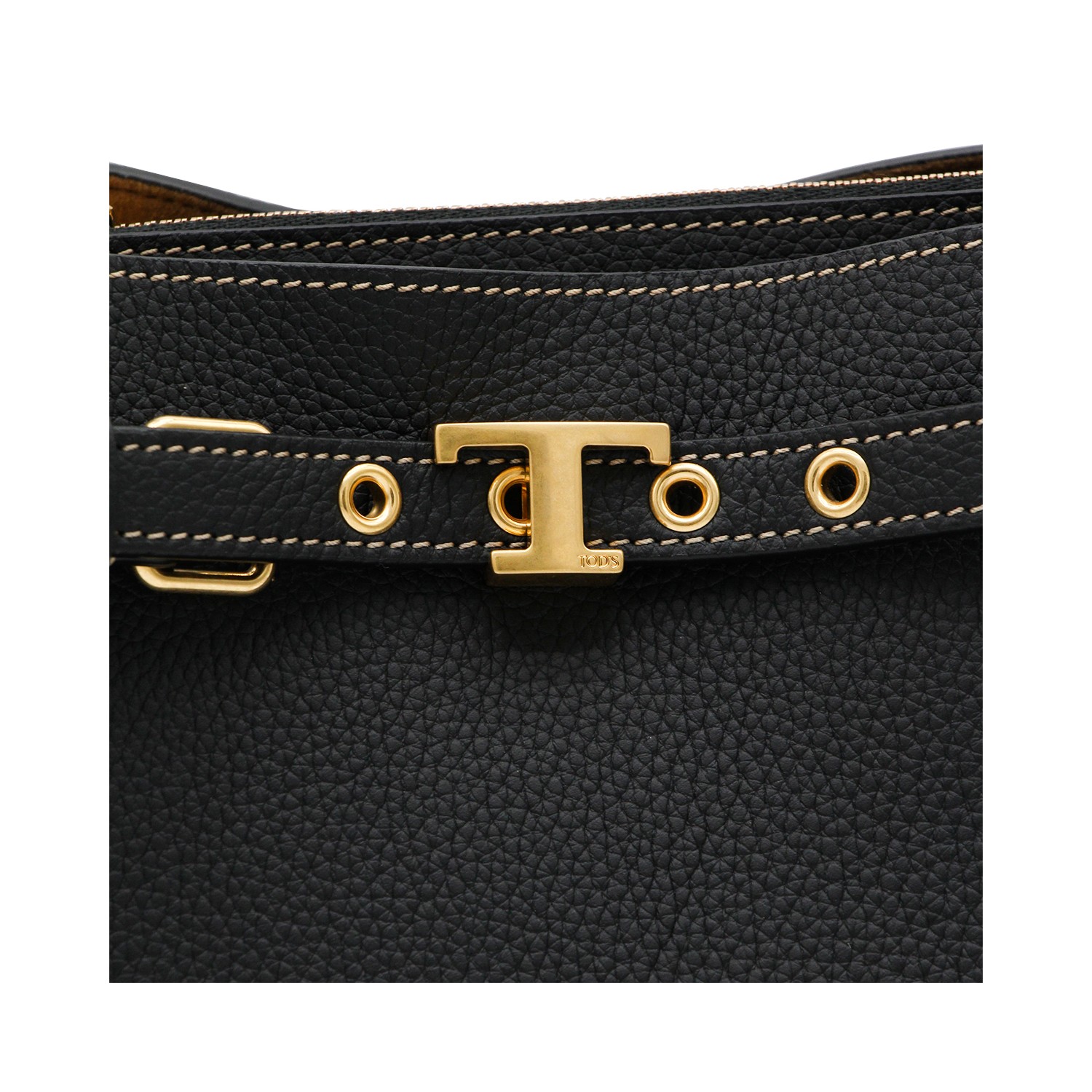 Black leather tote from Tod's featuring top handle, main compartment, zip fastening, removable strap, frontal logo and gold tone hardware.