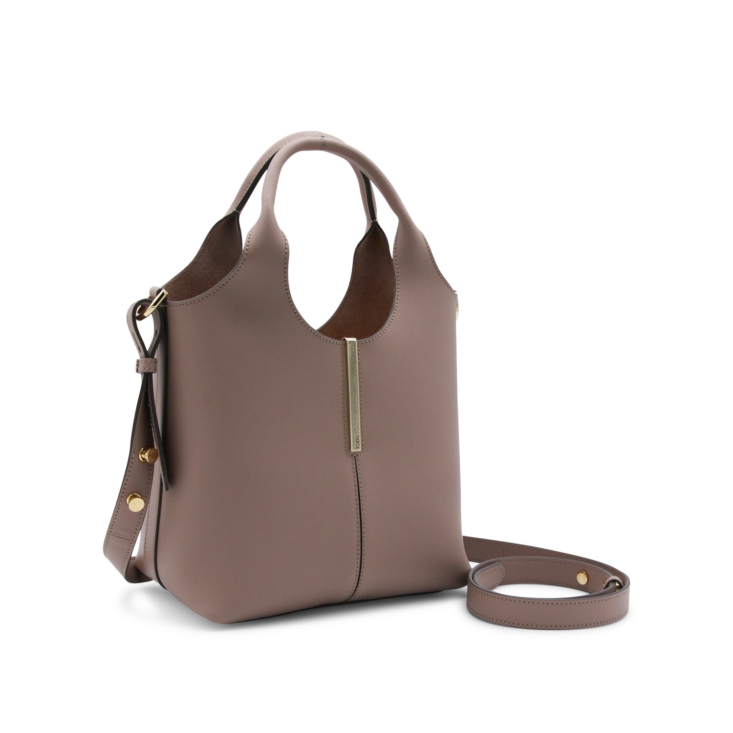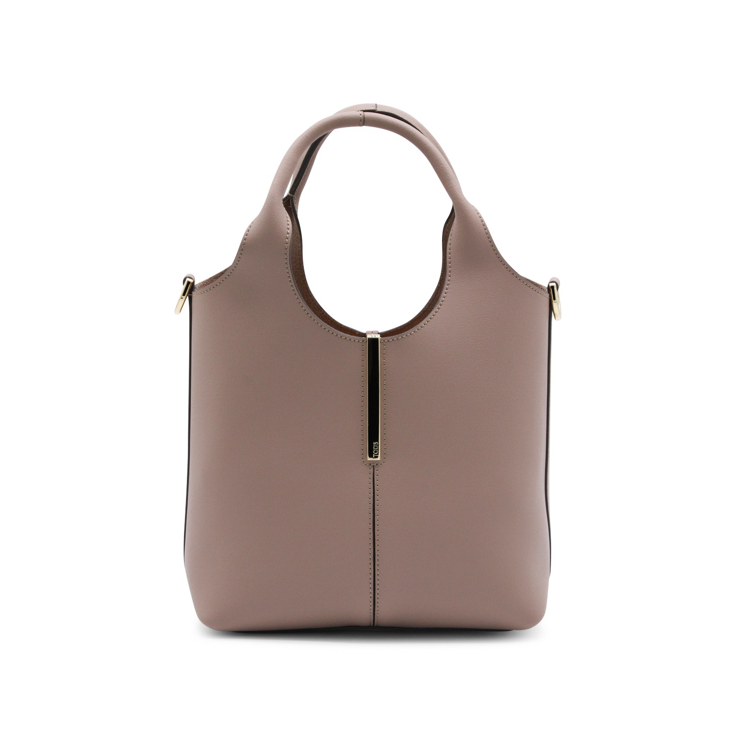 Pink leather tote from Tod's featuring top handles, main compartment, removable strap and silver tone hardware.