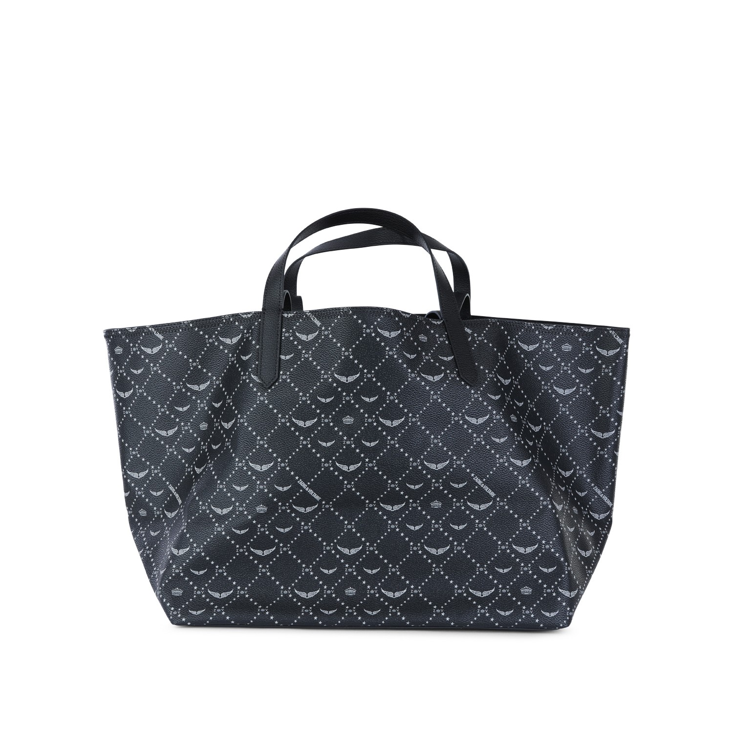 Black Shopper XL tote from Zadig & Voltaire featuring handles, frontal maxi logo, no closure and main compartment.