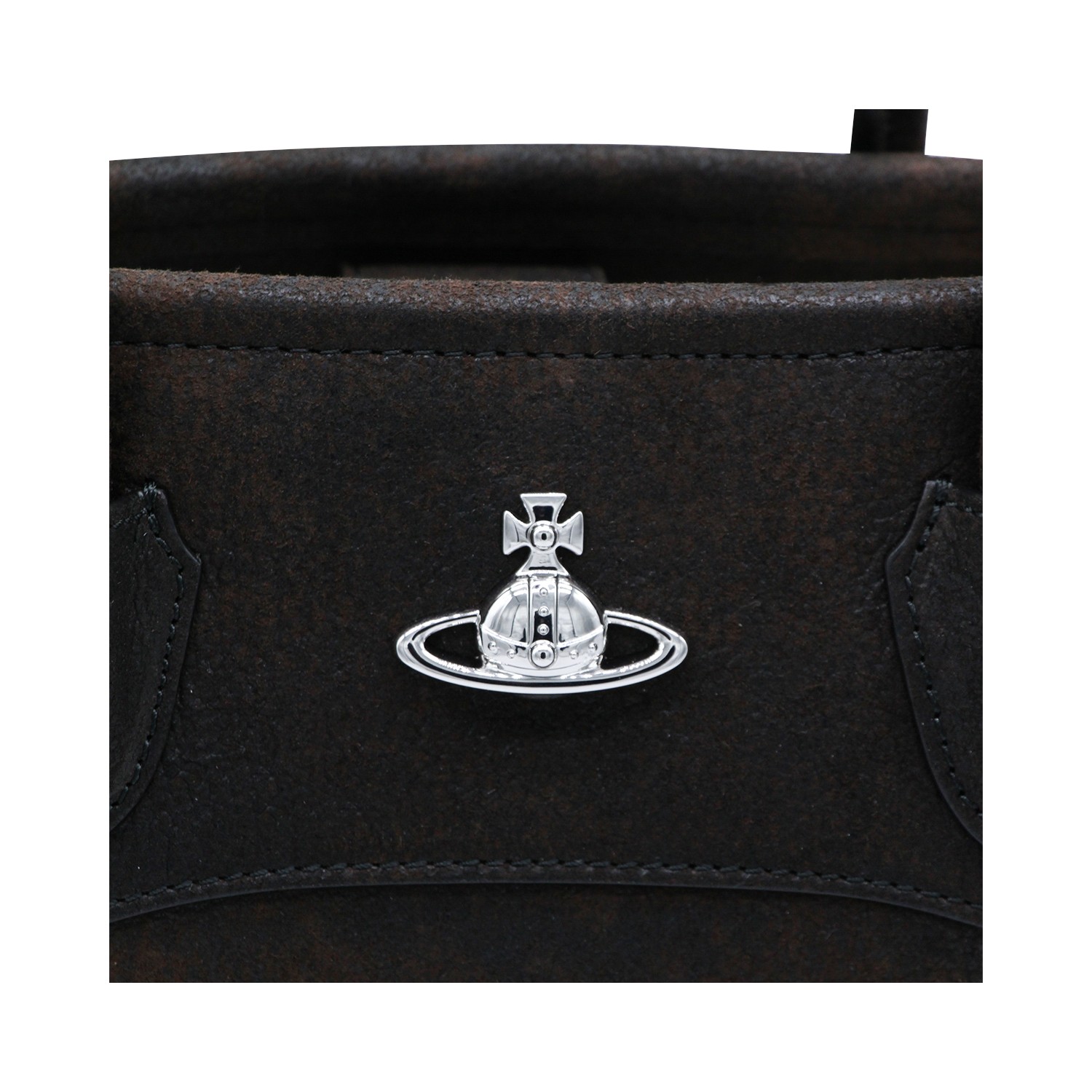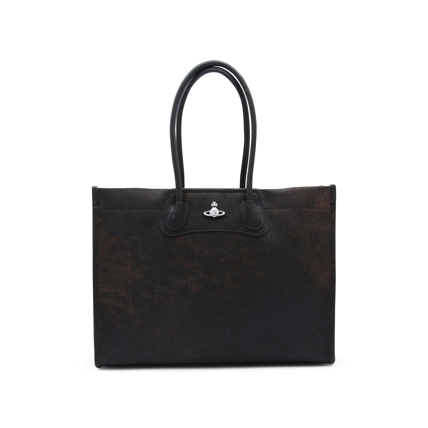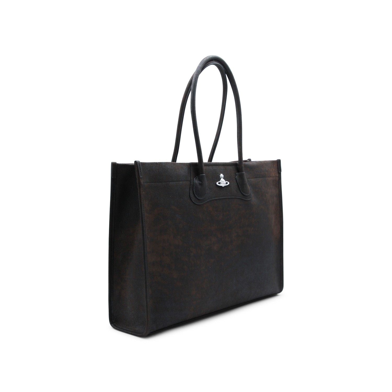 Black leathet totes from Vivienne Westwood featuring top handles, upper fastening, silver tone hardware, logo patch and inside pocket.