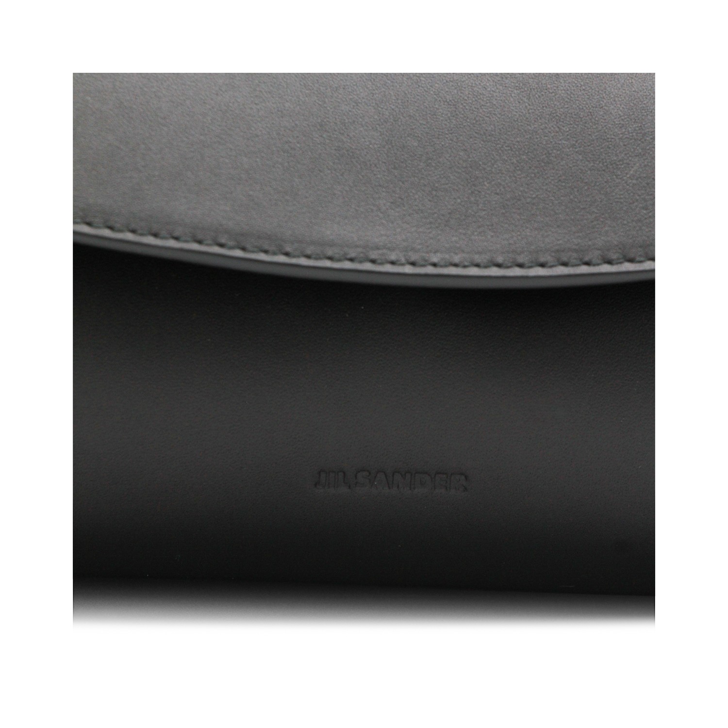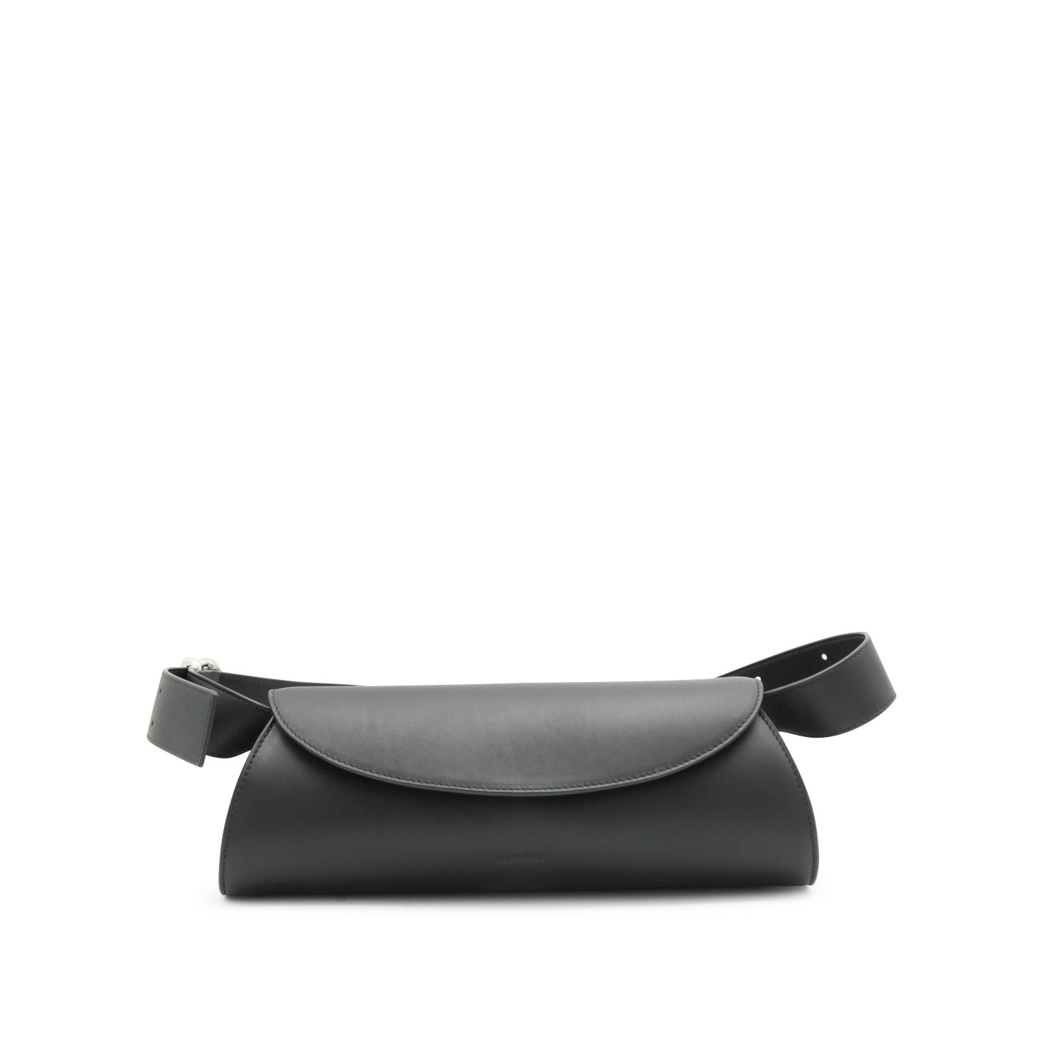 Black Cannolo SM shoulder bag from Jil Sander featuring adjustable strap, frontal fastening and main compartment.