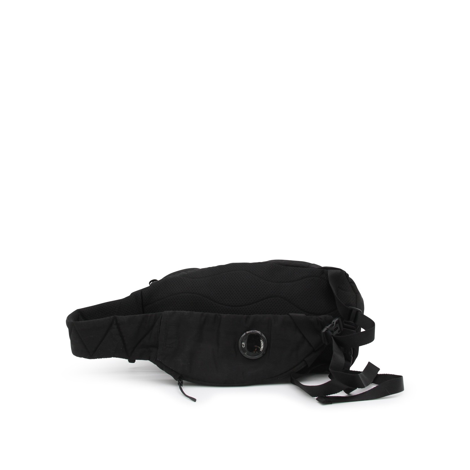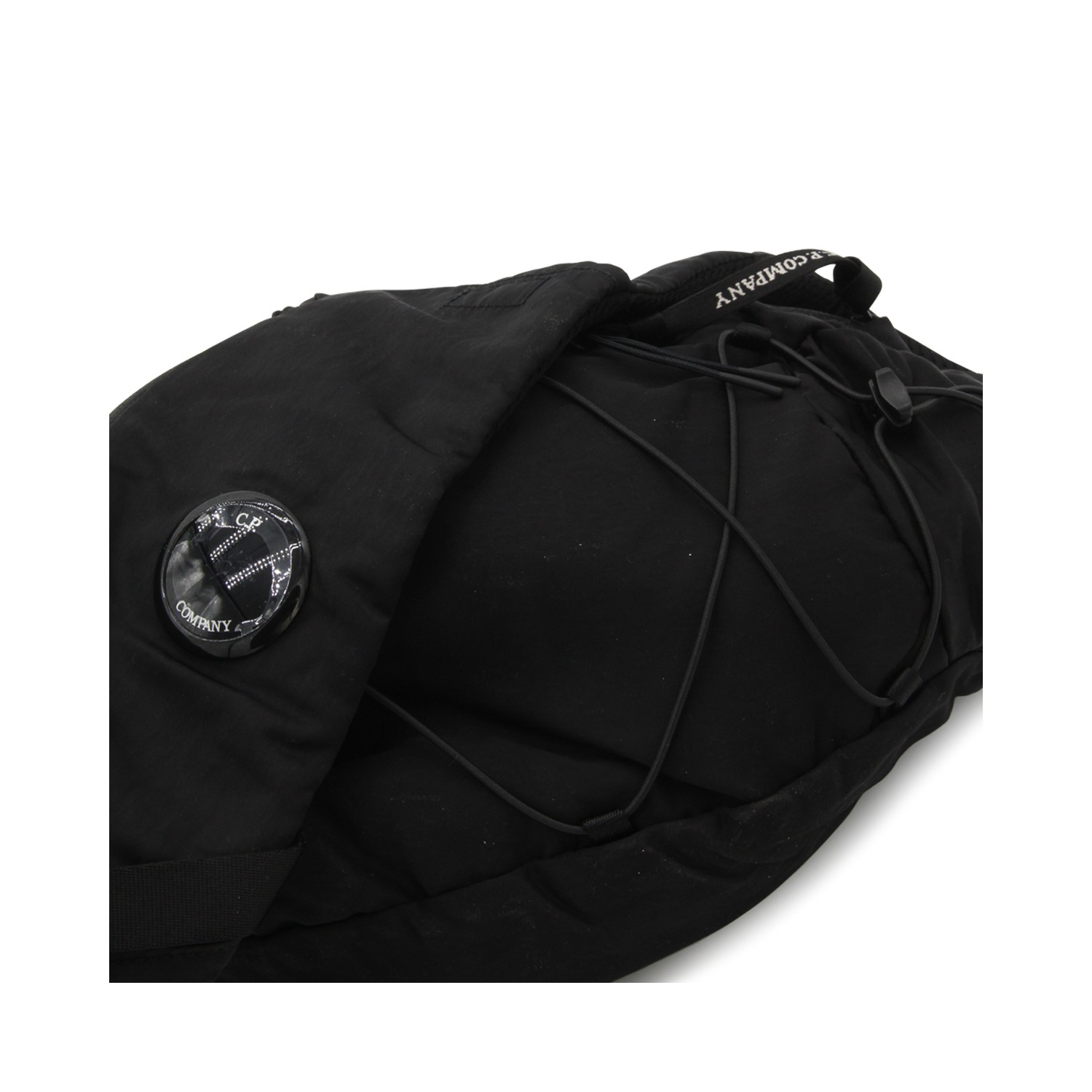 Black shoulder bag from CP Company featuring zip fastening, main compartment, adjustable size and laces details.