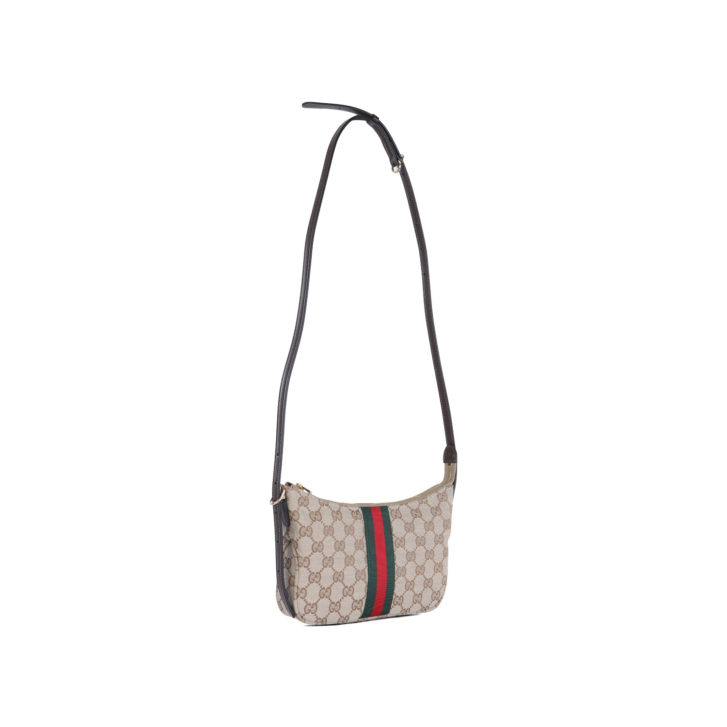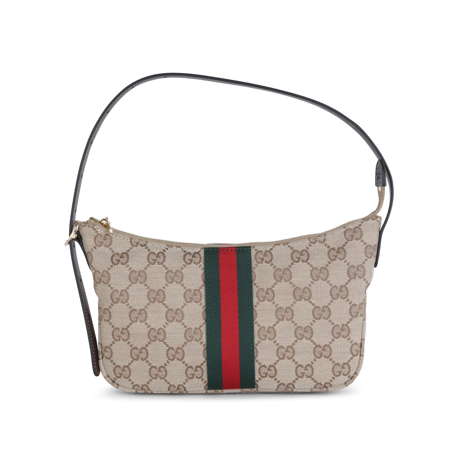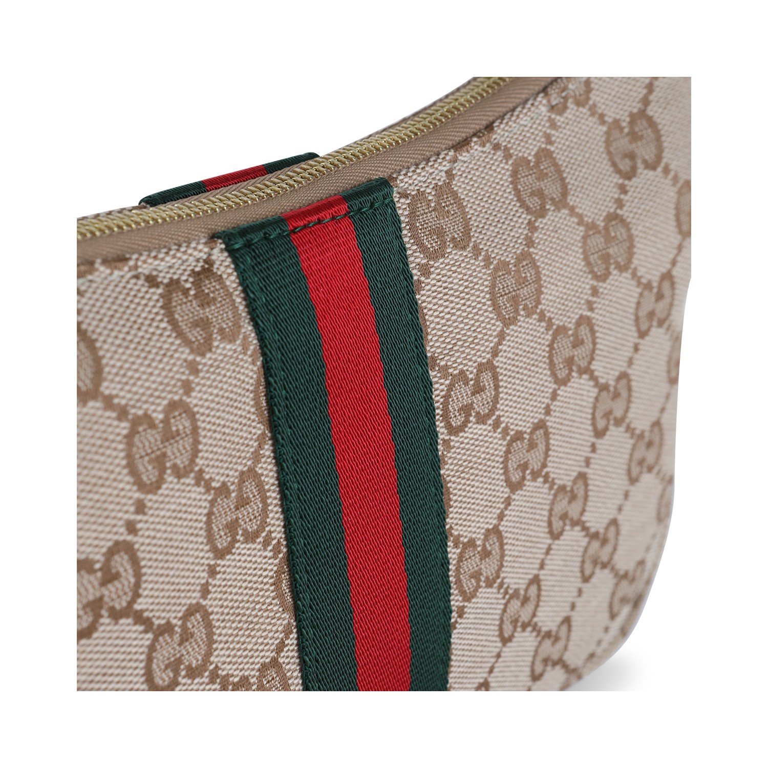 Beige shoulder bag from Gucci featuring main compartment with zip fastening, all over iconic GG stamp, adjustable shoulder straps and gold tone hardware.