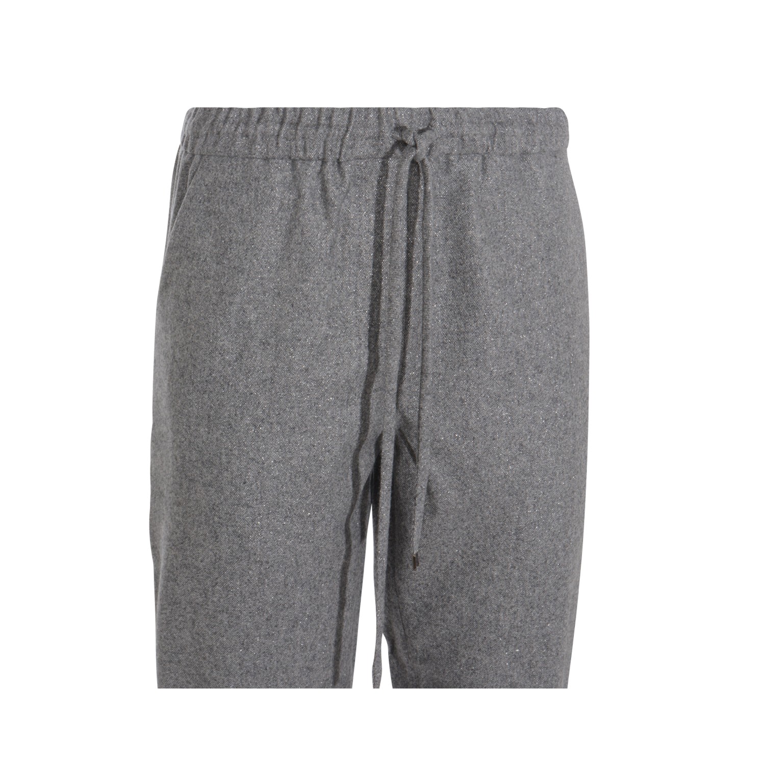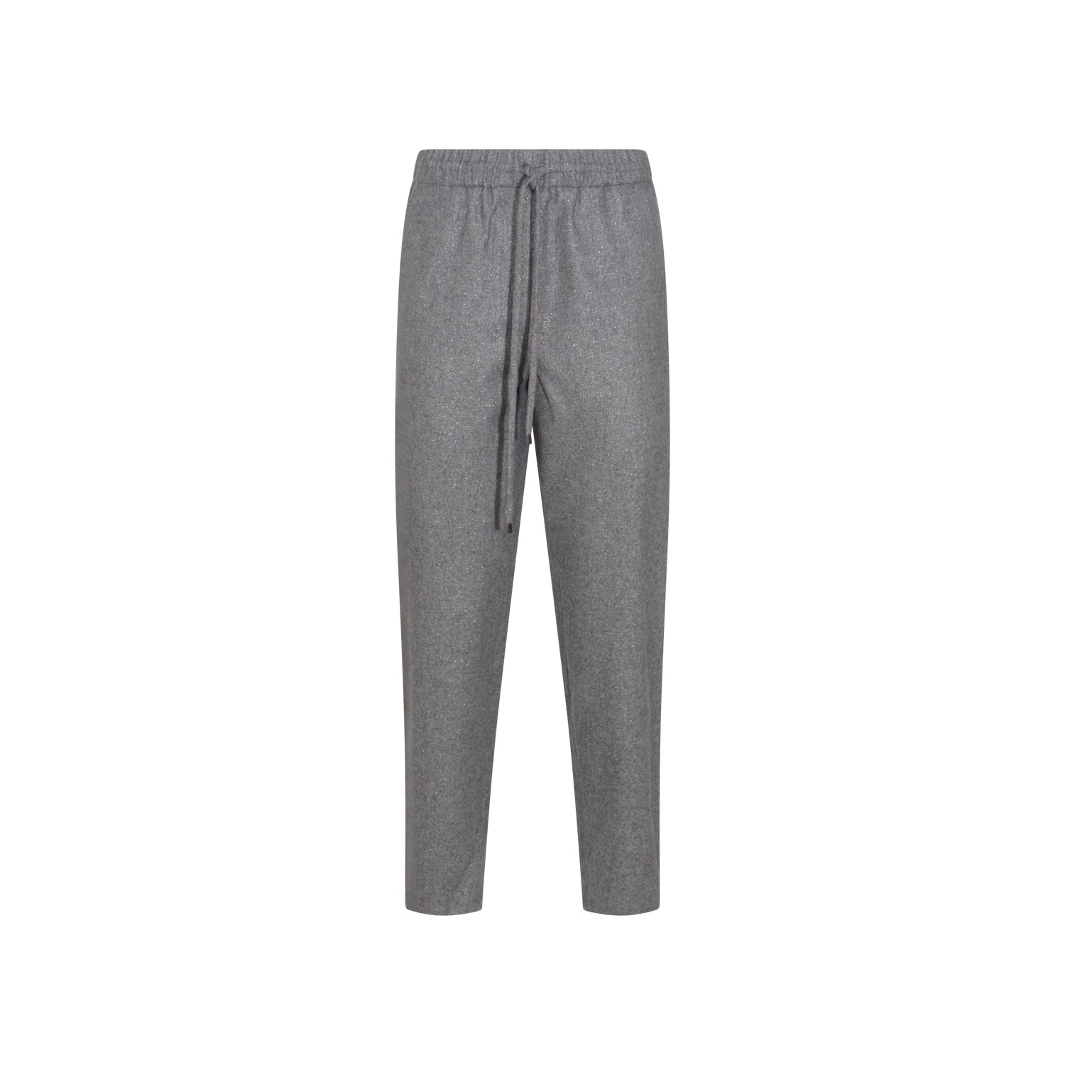 Grey wool Taralluccio pants from Antonelli Firenze featuring elasticated waistband with drawstring and straight leg.