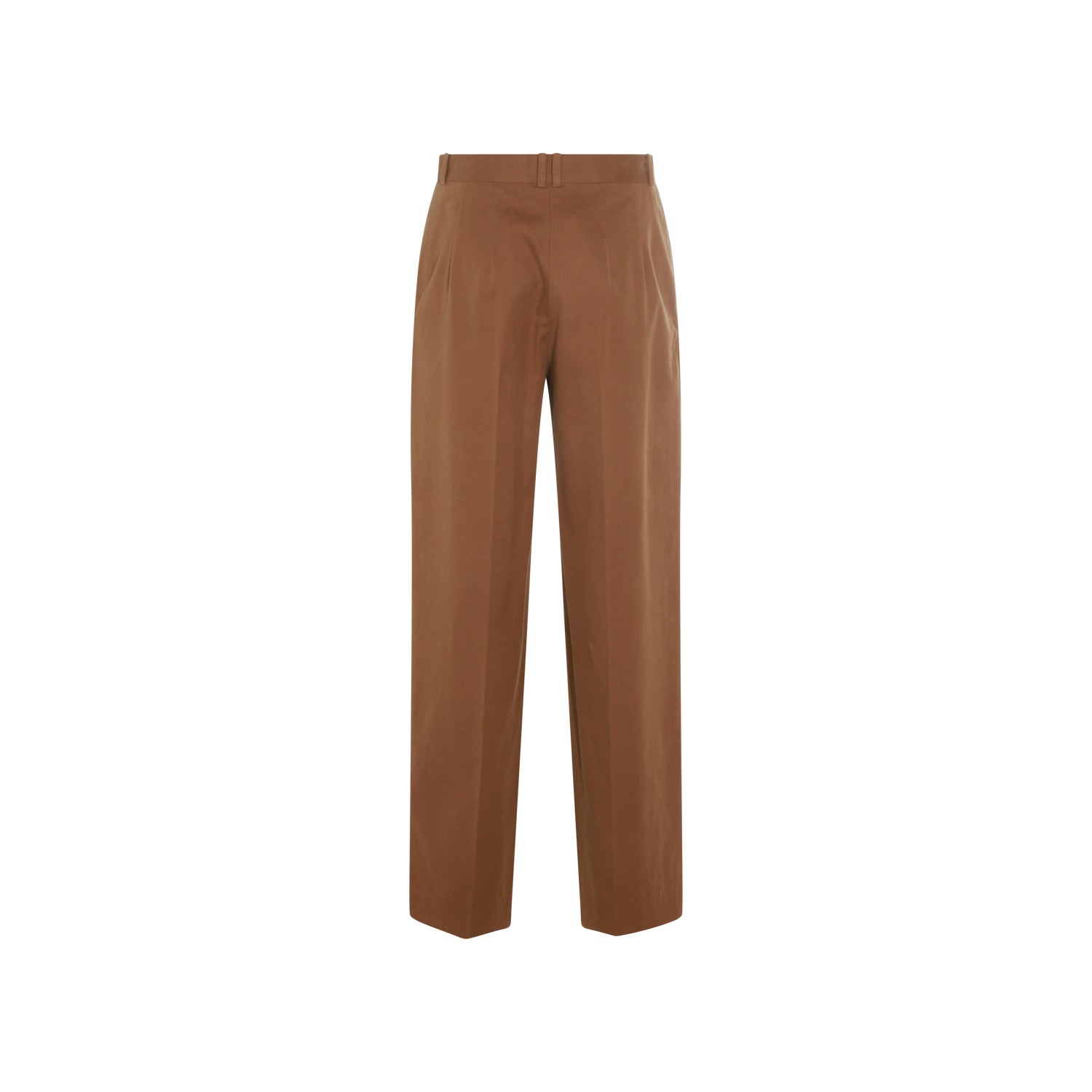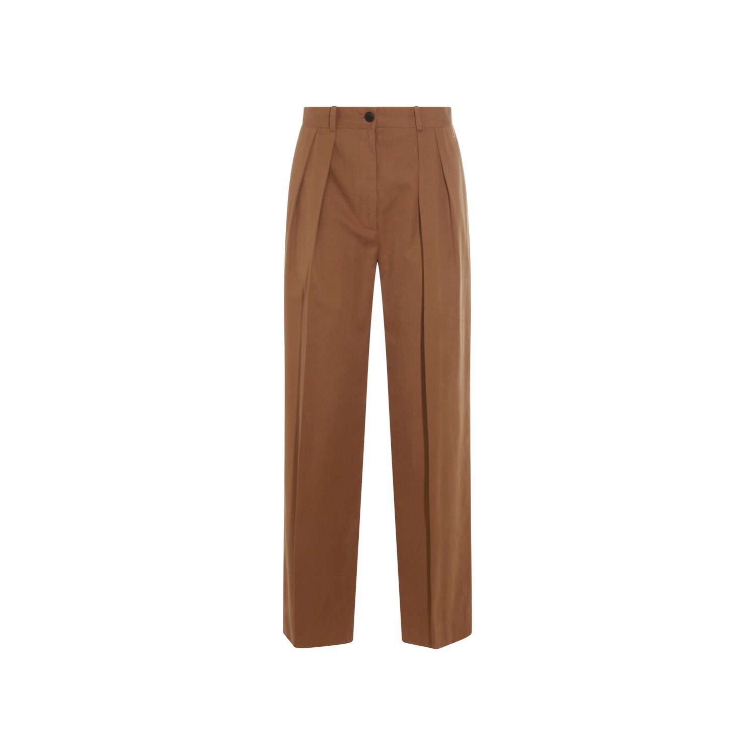 Dark sand cotton pants from The Row featuring high waist, pleated details, zip and button fastening and regular vestibility.