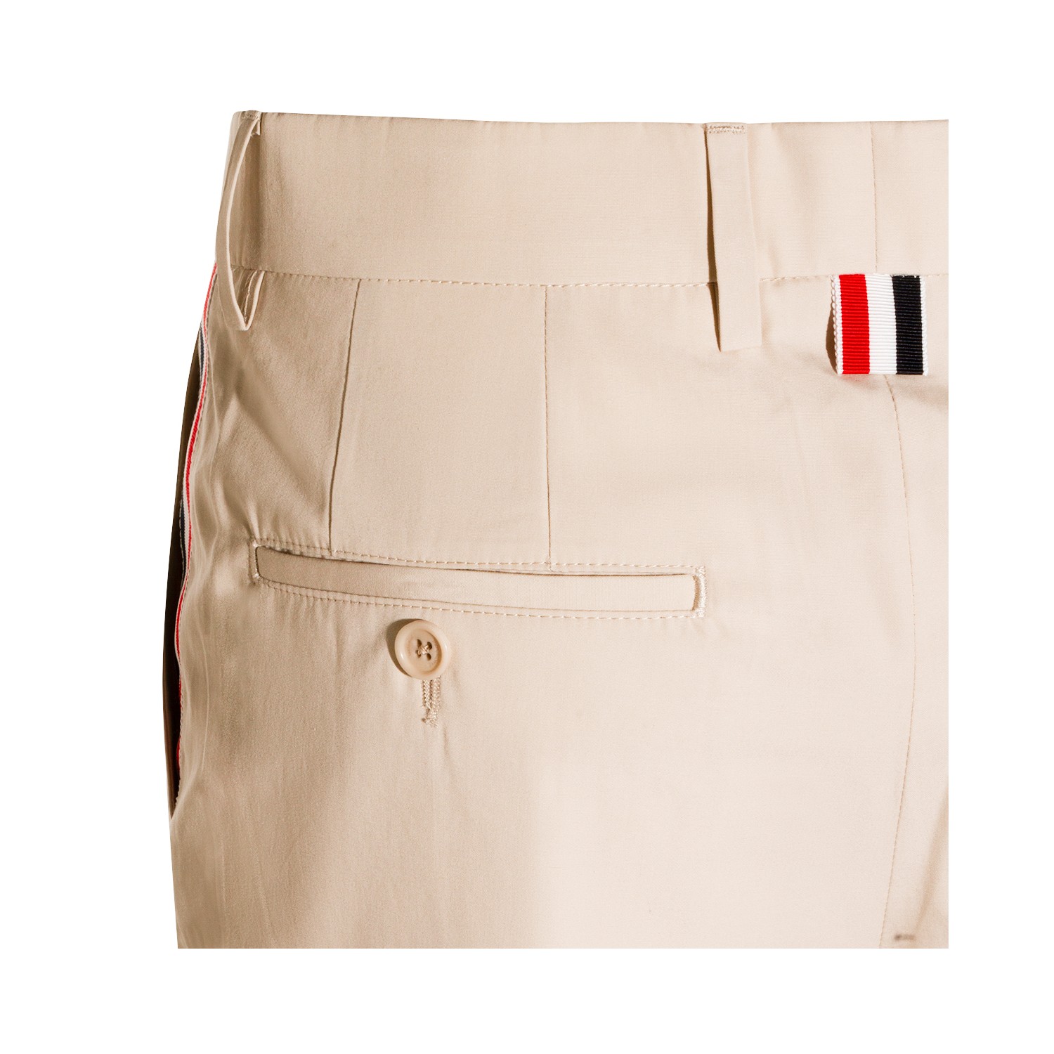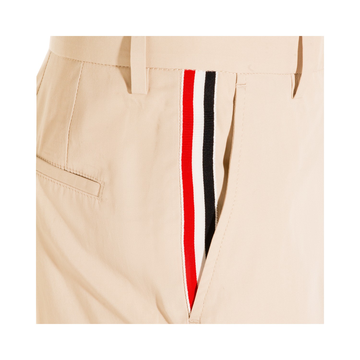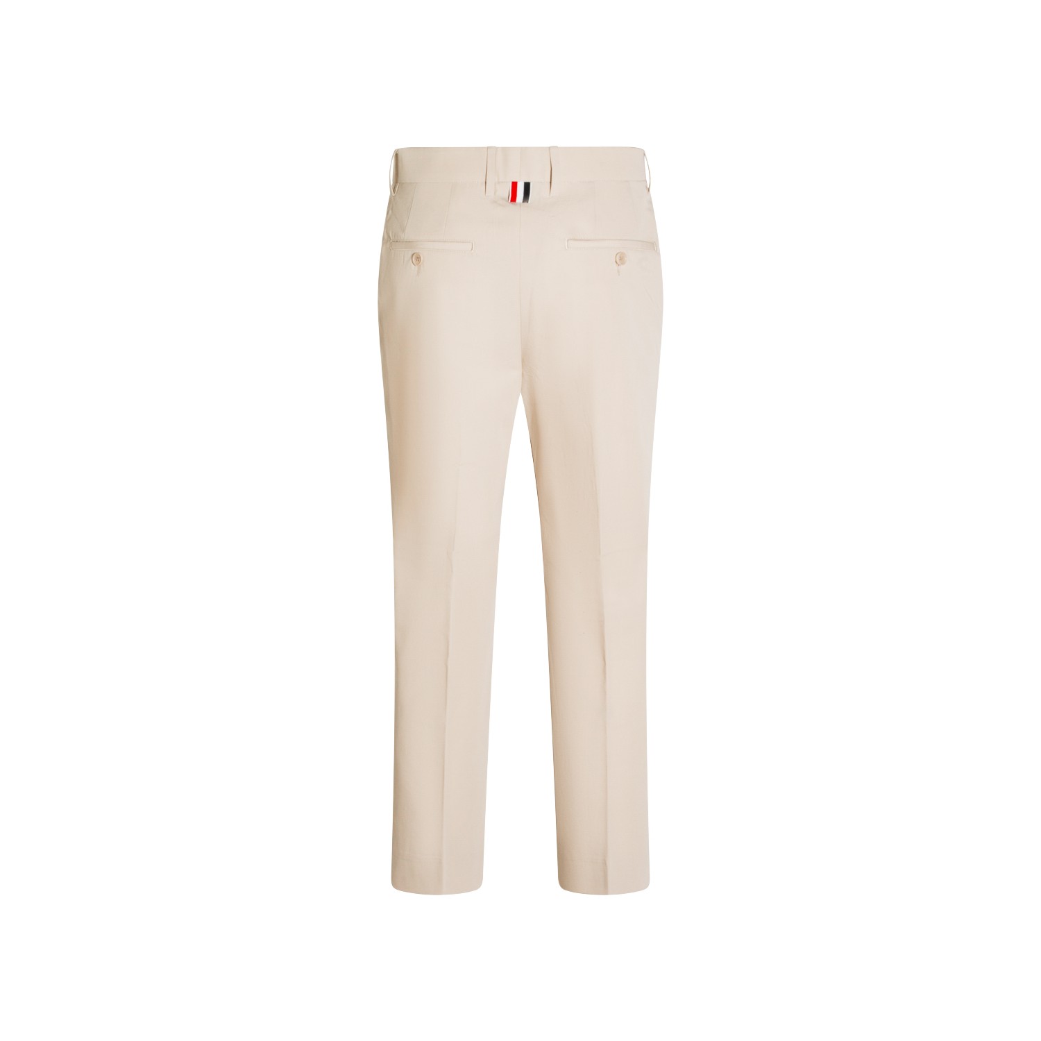 Beige cotton pants from Thom Browne featuring frontal fastening, pockets, belt loops and regular vestibility.