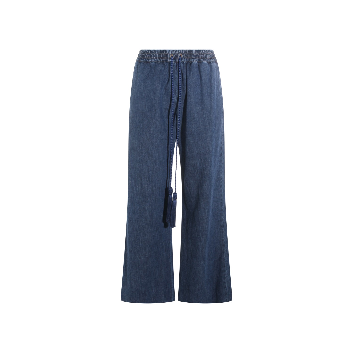 Blue cotton pants from Valentino featuring elasticated waist with drawstring and wide leg.