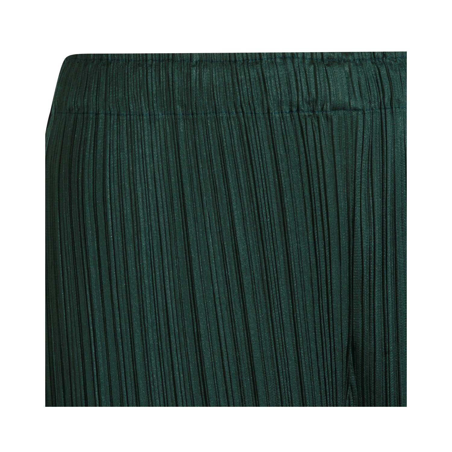 Dark green pant from Pleats Please Issey Miyake featuring elasticated waistband, pleats, wide leg and soft vestibility.