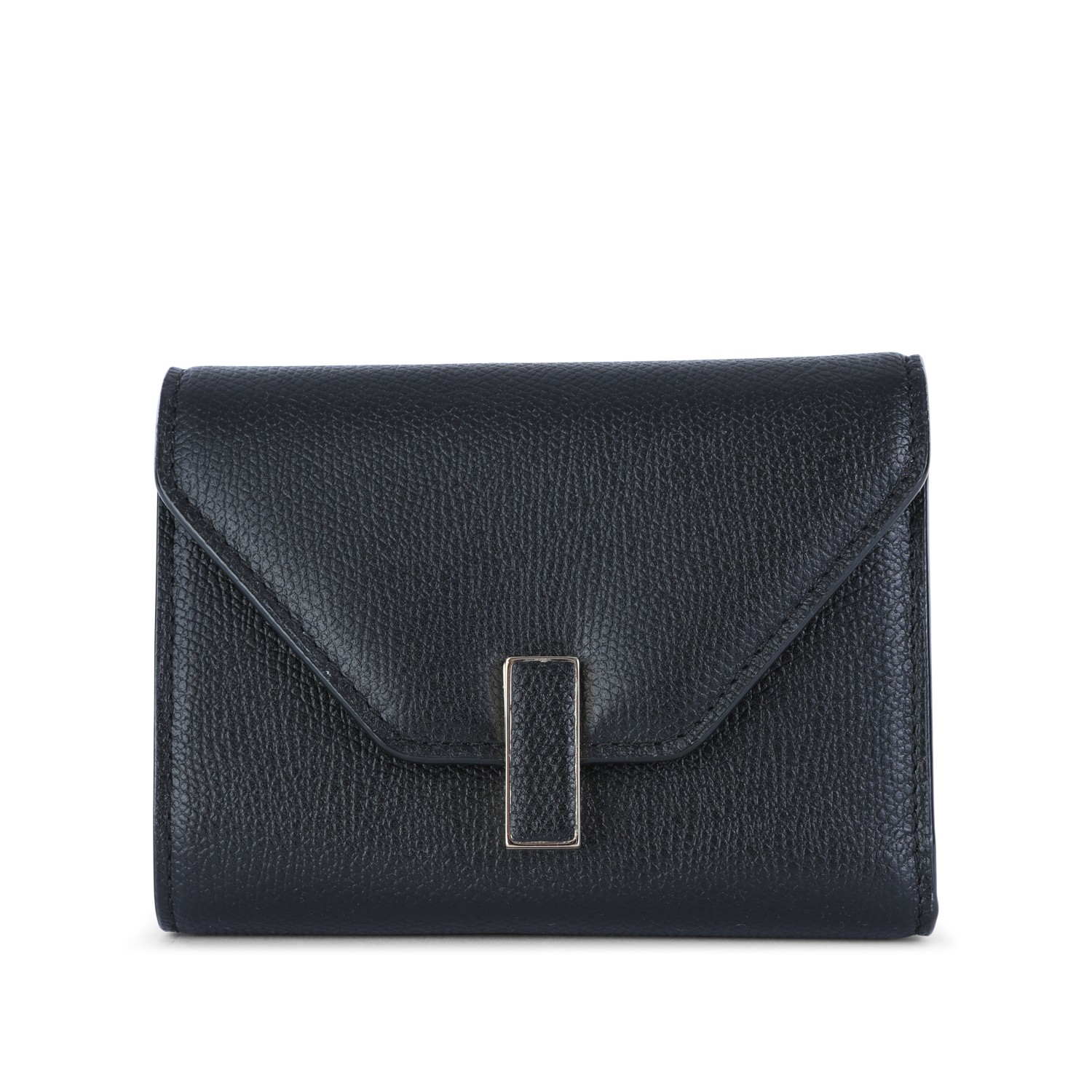 Black leather Fold 3 CC wallet from Valextra featuring frontal fastening, envelope shape and inside cars slots and pocket.